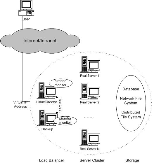 Piranha is one of the clustering products from Red Hat Inc., it includes the IPVS kernel code, cluster monitoring tool and web-based cluster configuration tool.